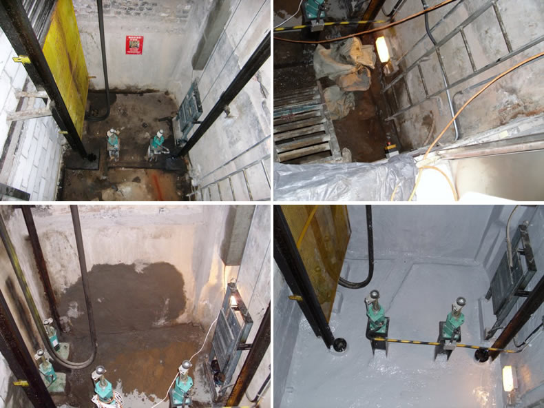 3、电梯在日常使用中,由于钢带与基座直接复杂的运动关系,撕裂了柔性防水层,加上刚性防水层本身就有问题,就会造成漏水。